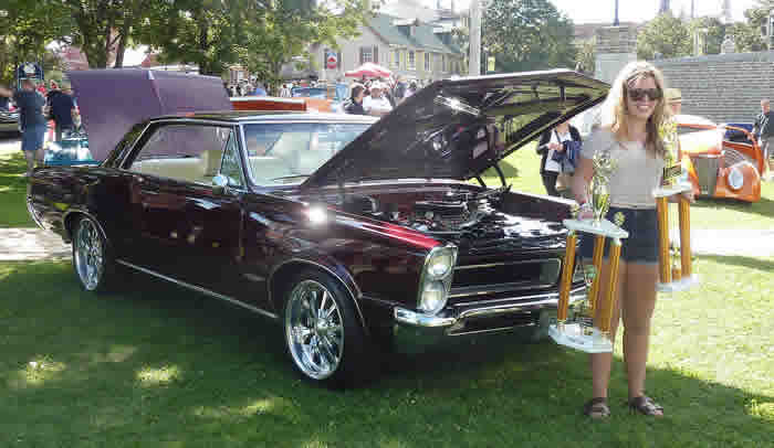 This lucky lady gets to start at the top. Dad gave her his winning 1965 GTO... -- some first car, huh ? |